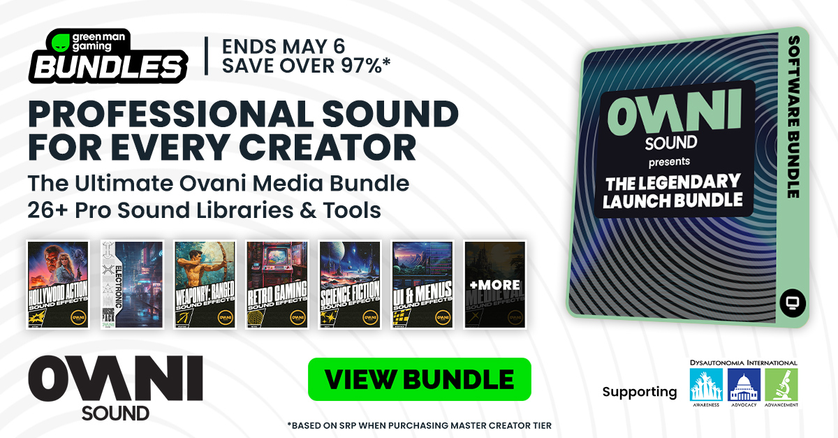 We’re excited to launch our latest software charity bundle, Ovani Presents The Legendary Launch Bundle, designed for developers, creators, students and hobbyists. The bundle offers a versatile collection of royalty-free music packs, sound effect libraries and engine plugins to support projects across game development, prototyping, worldbuilding and interactive media.